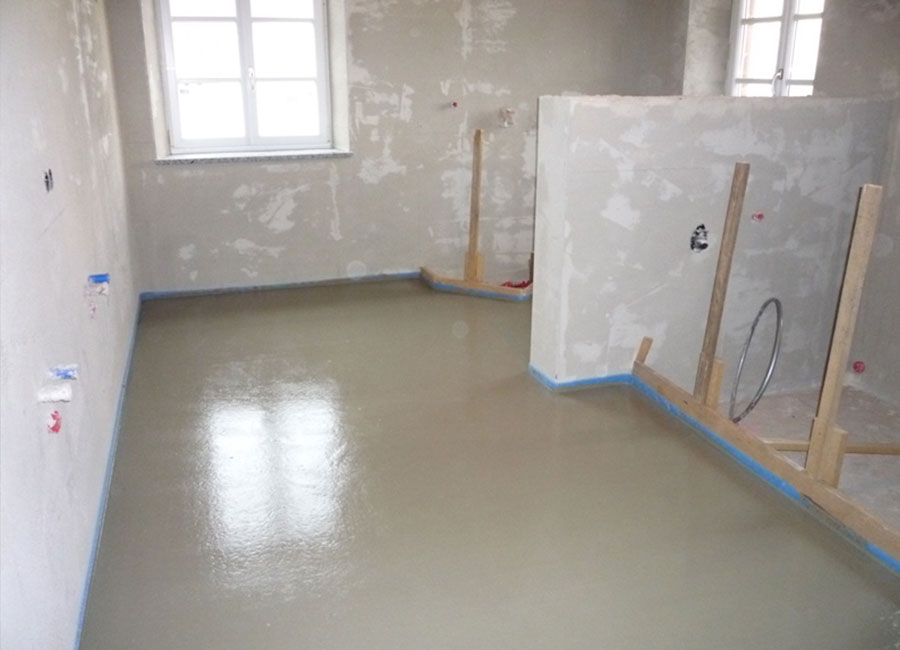 Der Fließestrich wird maschinell eingebracht und verteilt sich selbstständig zu einer ebenen Oberfläche. Durch seine gute Fließfähigkeit ermöglicht er eine besonders gleichmäßige Oberfläche und eignet sich hervorragend für den Einsatz auf Fußbodenheizungen, da er die Heizrohre vollständig umschließt. Die Ausführung erfolgt gemäß Herstellervorgaben unter Berücksichtigung der Trocknungs- und Belegreifezeiten.
